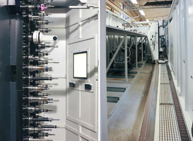 - En 4-akset maskin fra DN Solutions. Fresemaskinen, en NHP5000, er horisontal og har høy ytelse i form av hurtigtraverser, spindelturtall og effekt.