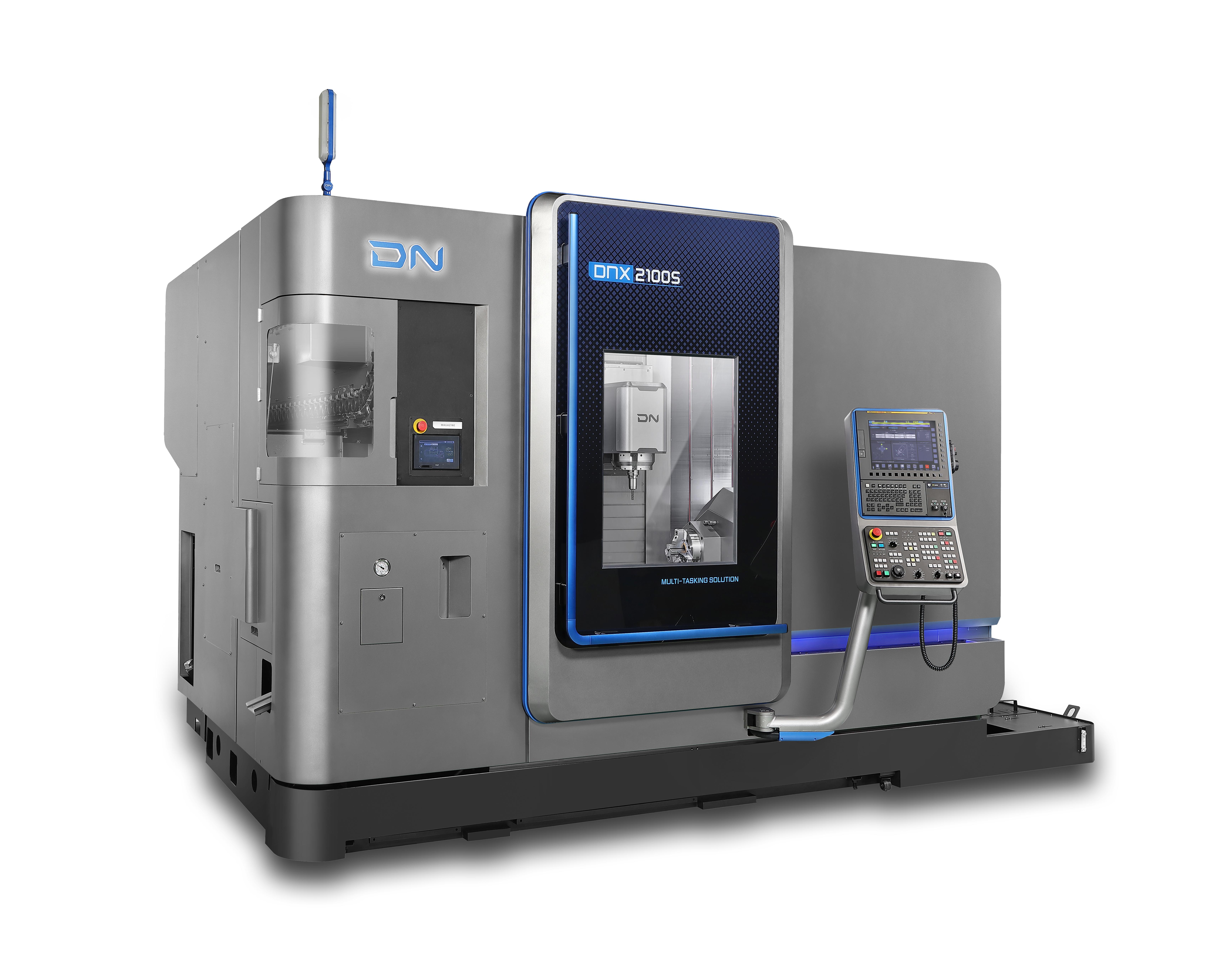 DNX-serien fra DN Solutions er et neste generasjons flerakset dreiesenter som kombinerer kraftige dreieegenskaper med høy presisjon i freseoperasjoner . Serien er utviklet for å håndtere store, lange og komplekse emner, og kombinerer en stiv konstruksjon med en høyhastighets frese-spindel og en ortogonal maskineringslayout for optimal nøyaktighet og stabilitet. DNX-serien utmerker seg i multitasking-operasjoner og tilbyr enestående produktivitet og maskineringsfleksibilitet for krevende applikasjoner innen et bredt spekter av materialer og bransjer. Egenskaper som servodrevet bakdokk, romslig arbeidsområde, og utbyggbar automatisk verktøyveksler, gjør serien til en ideell løsning for tung, høyhastighets, og presisjonsdrevet bearbeiding. |