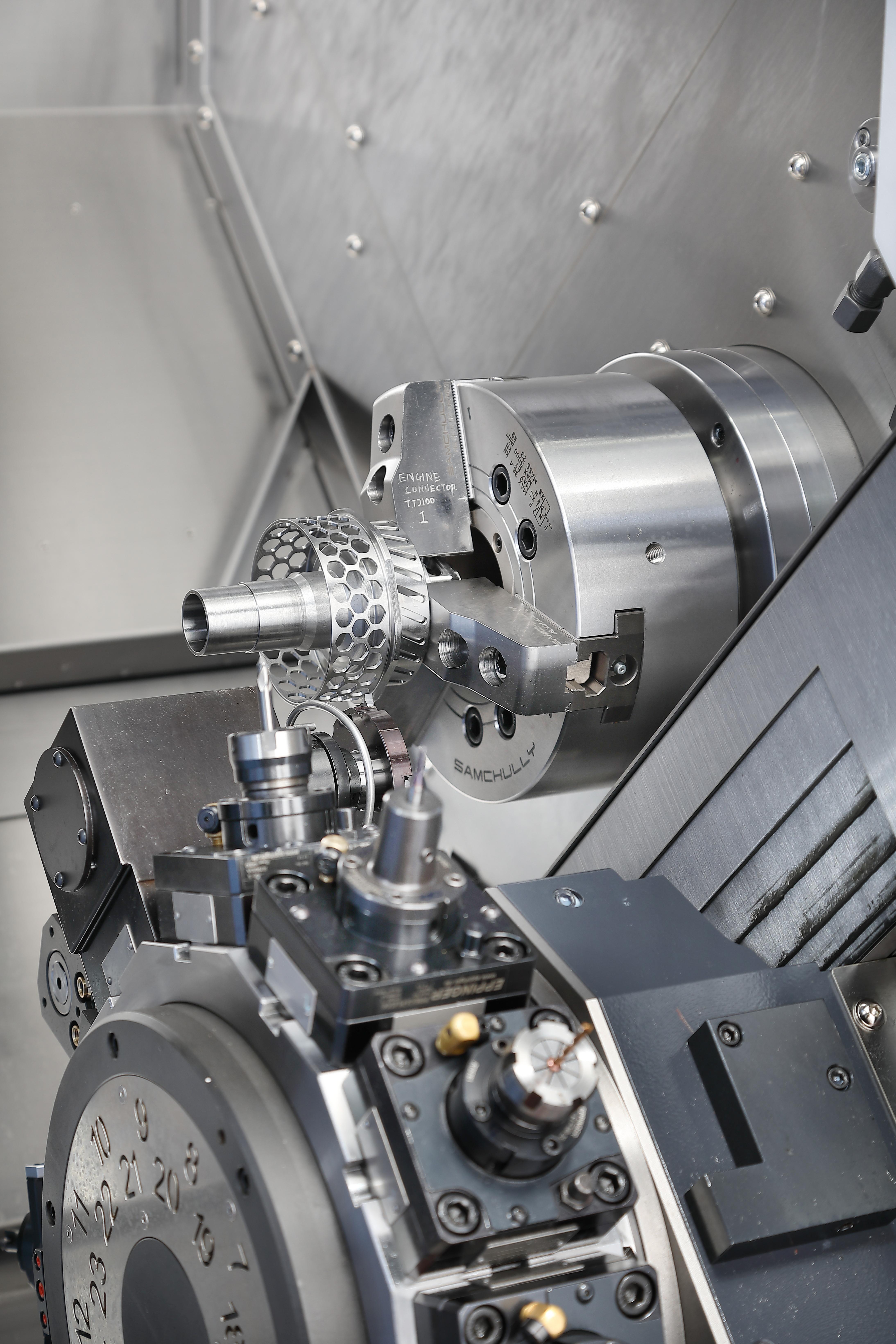 - Fleksible maskineringsmuligheter: Med øvre/nedre revolvertårn og Y-akse-funksjon håndterer disse maskinene komplekse oppgaver med høy presisjon og effektivitet.