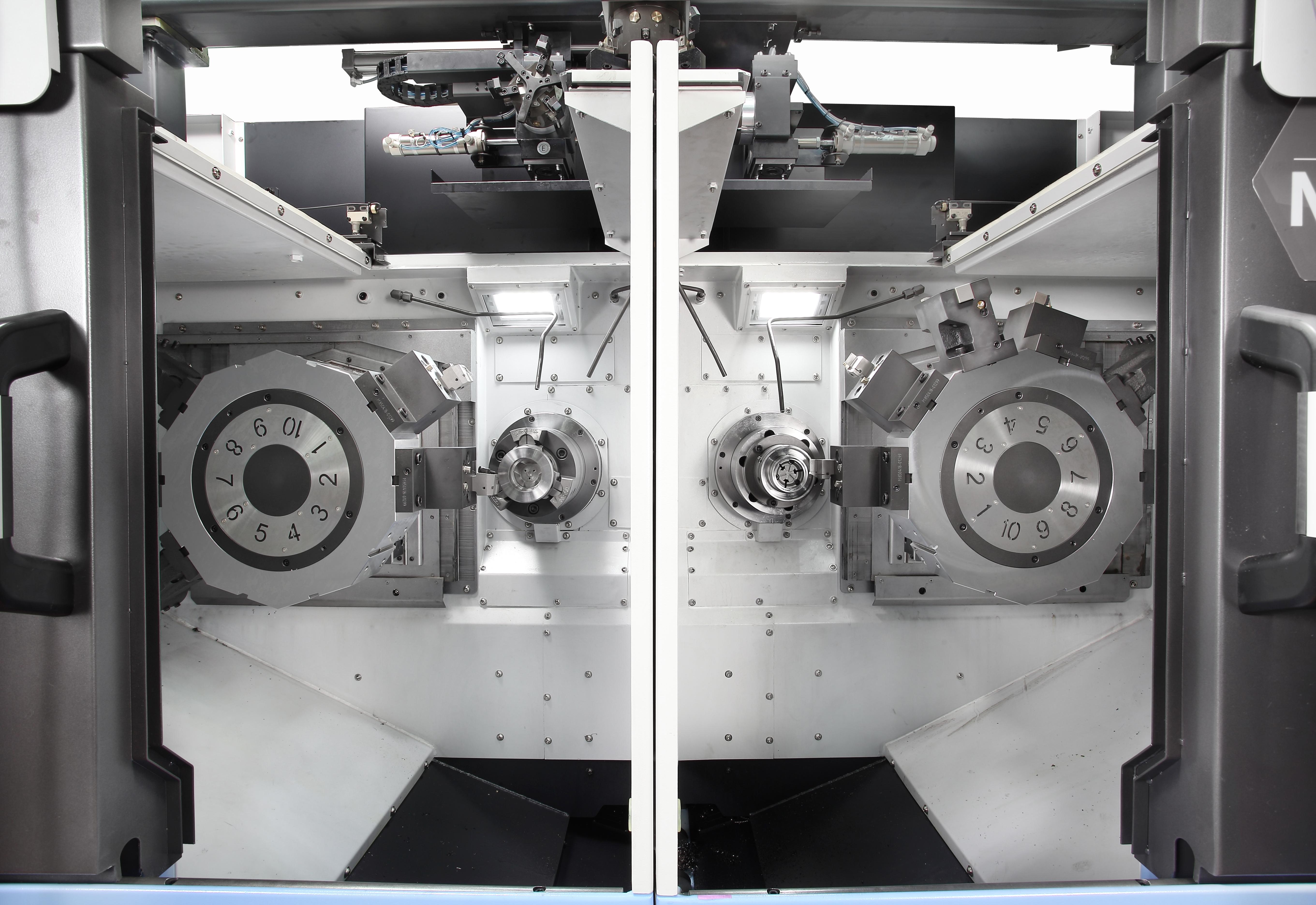- Høy produktivitet: Dobbelspindel-designen muliggjør samtidig maskinering og øker produksjonseffektiviteten betydelig.