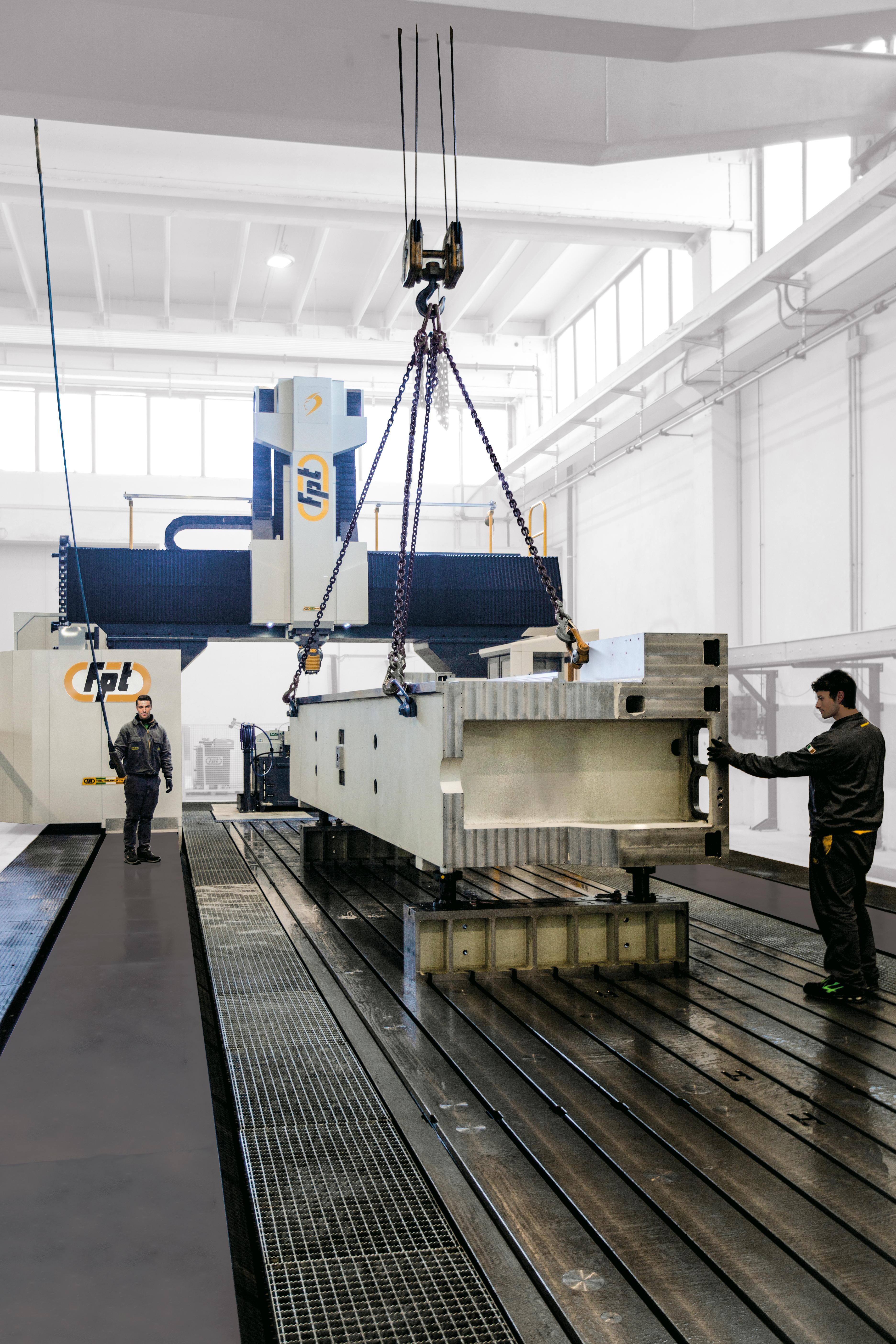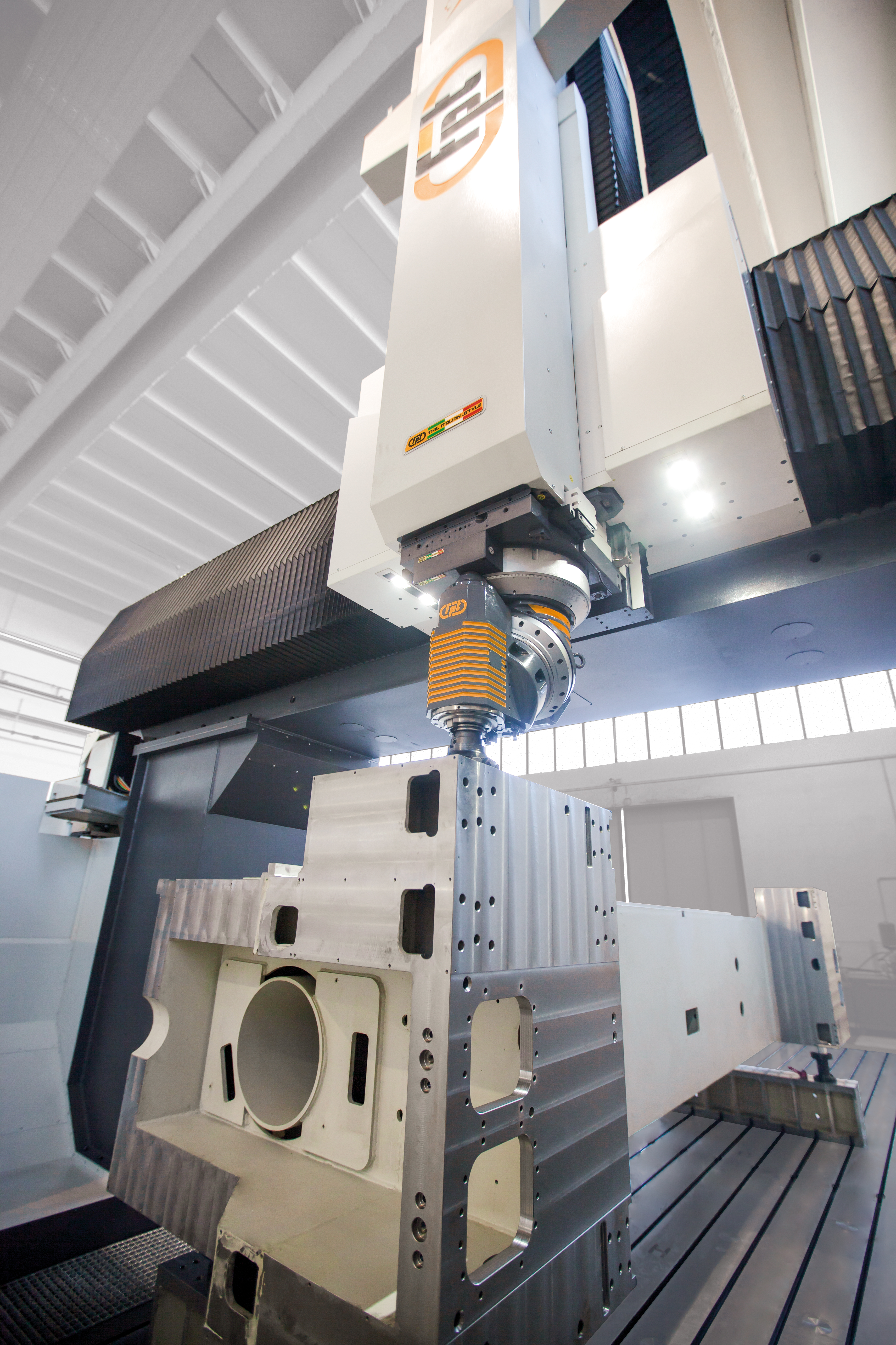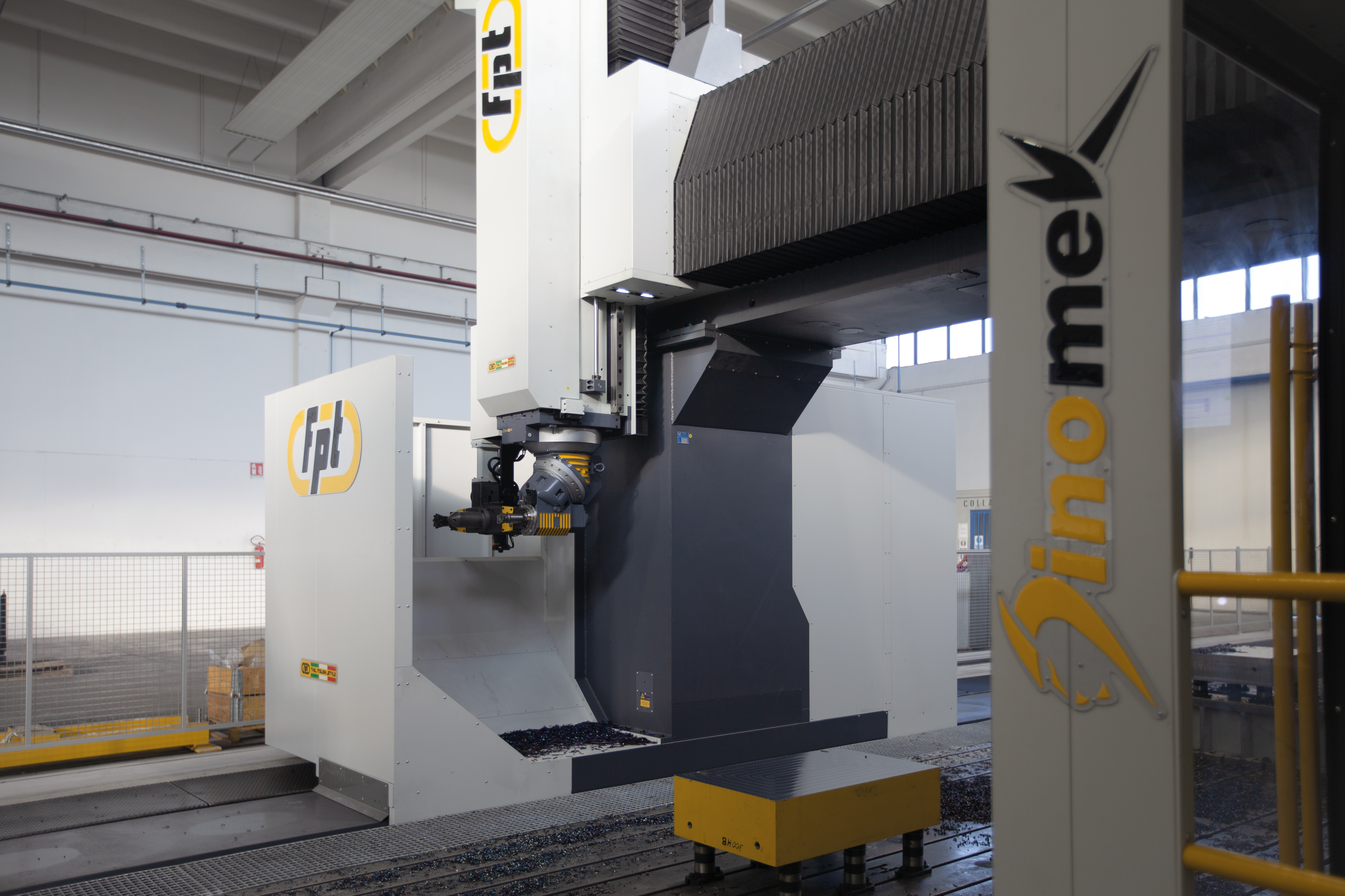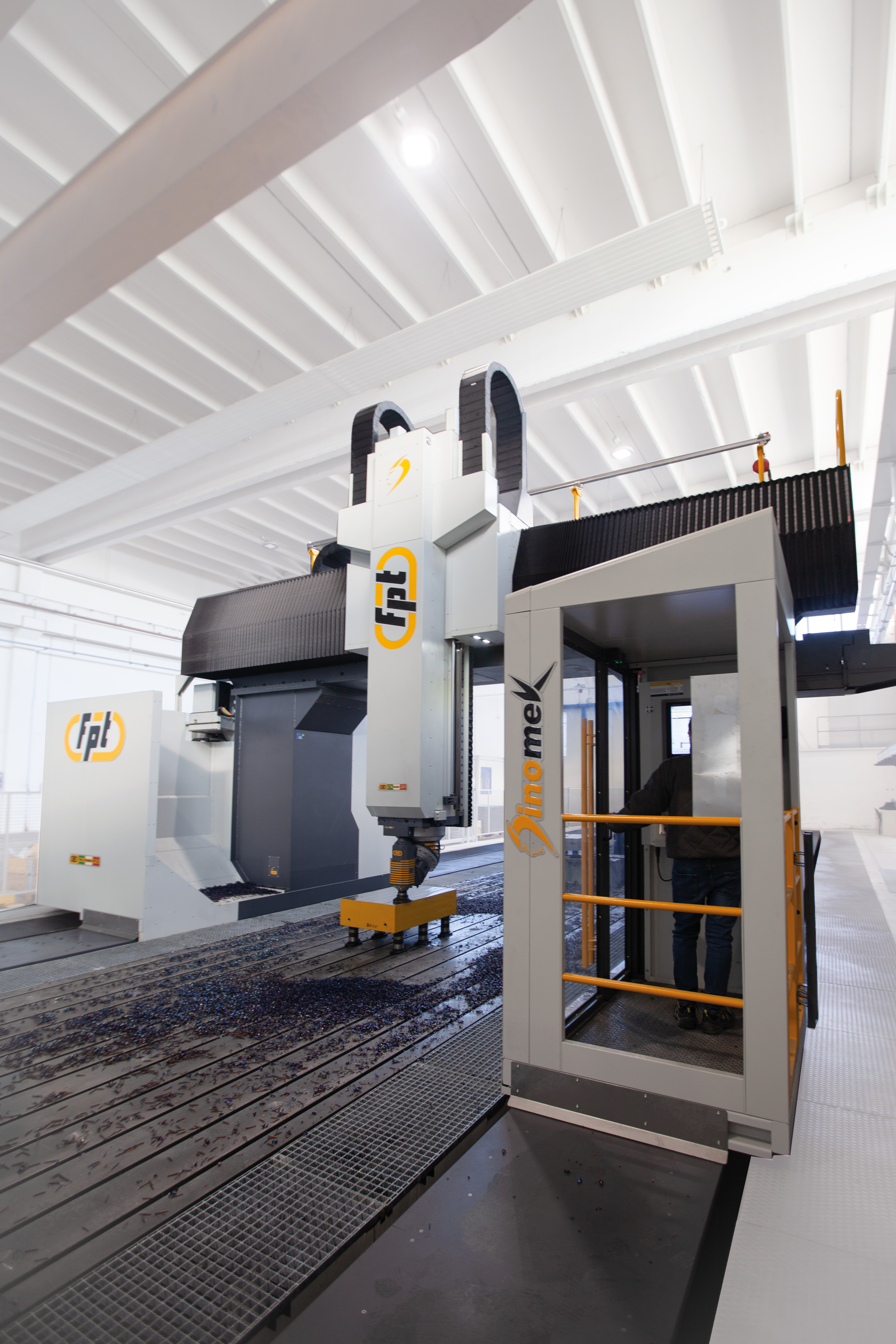 Dinomek is a moving-gantry vertical milling machine designed for the machining of large components with power, flexibility, and operator-friendly access. Its unique lowered base morphology (patent pending) allows operators to safely walk into the machining area, eliminating bulky telescopic covers while keeping guideways and axis systems fully protected. This design ensures easier cleaning, faster chip removal, and more efficient machine maintenance. Ideal For |